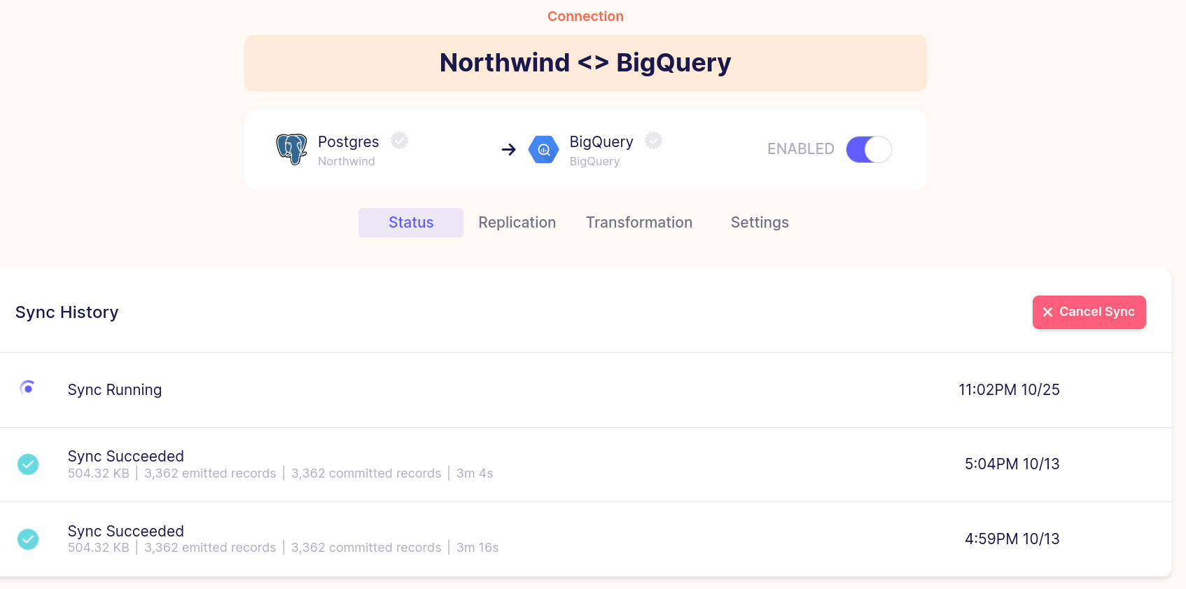 Fig. 50 Verificando o status dos syncs no Airbyte#